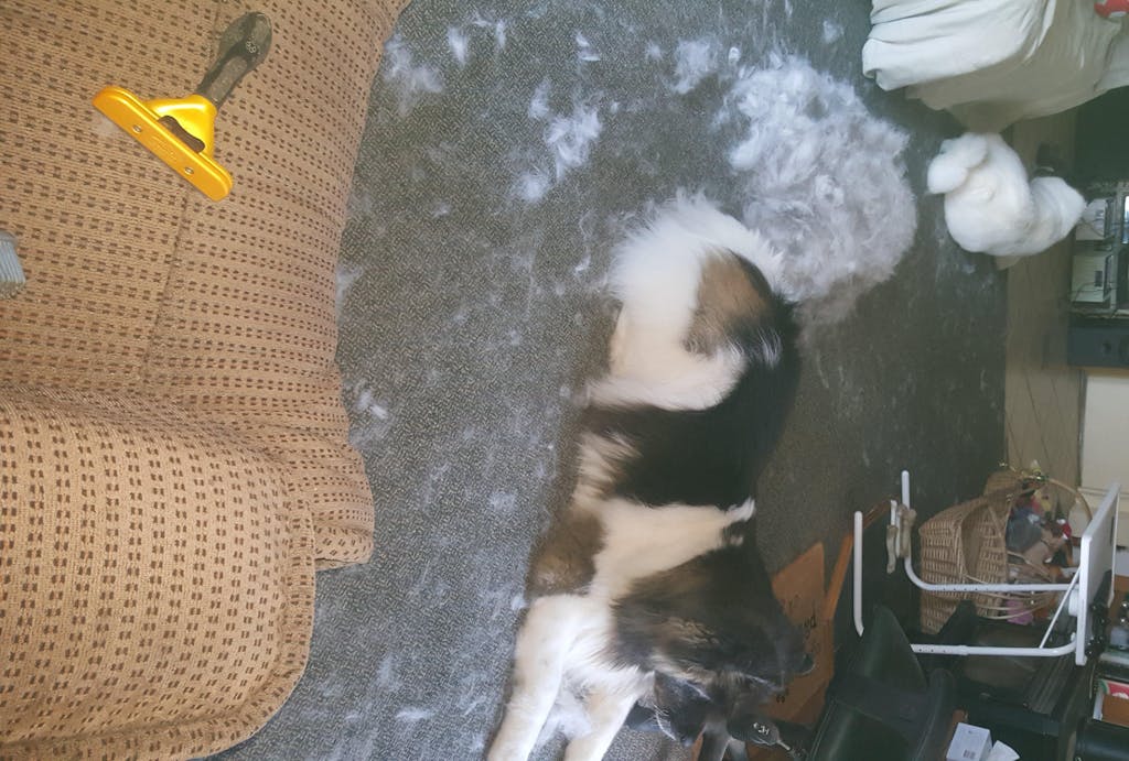 we cannot recommend the GROOMI enough, it is awesome, we, now, basically have a FLUFF FREE HOME, when Akita's decide it is time to blow their undercoat, you have fluff from front to back door, as well as every surface in between, you don't wear anything black during this time, you brush for a few weeks, then you need a professional blow dryer to blow the coat out, it ends up, literally, all over the neighbourhood and is known as a groomers worst nightmare. then along came your wonderful GROOMI, oh how I love you, thankyou thank you thankyou, no mess, no fuss and no hassle