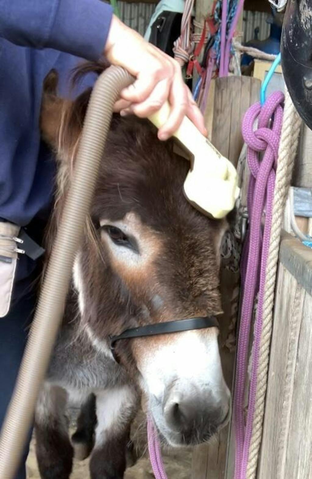GROOMI did a great job of stripping out my donkeys thick fine Winter floof, no more eating, breathing and wearing donkey hair while grooming